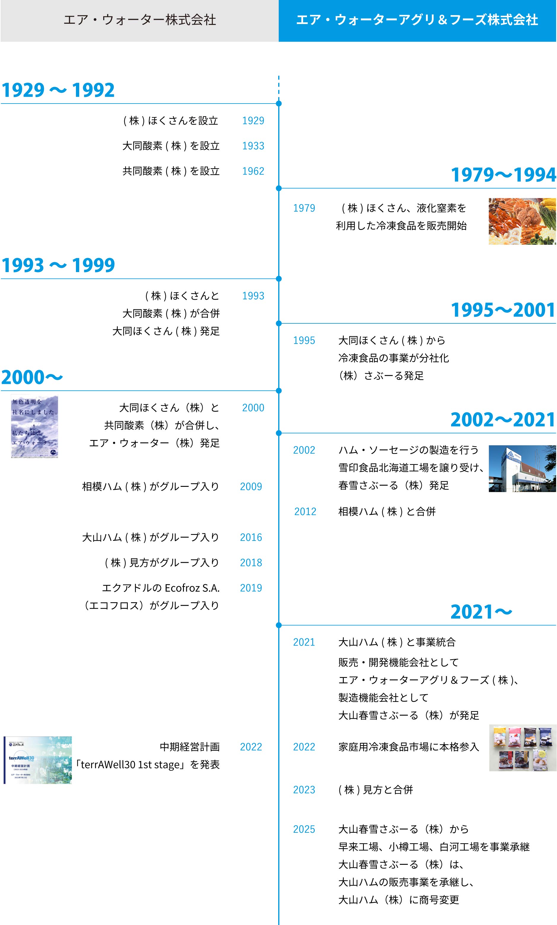 当社は親会社である大同ほくさん株式会社(現エア・ウォーター株式会社)の冷凍食品事業の拡大から、冷凍食品事業を分社化し1995年に株式会社さぶーるとして設立しました。